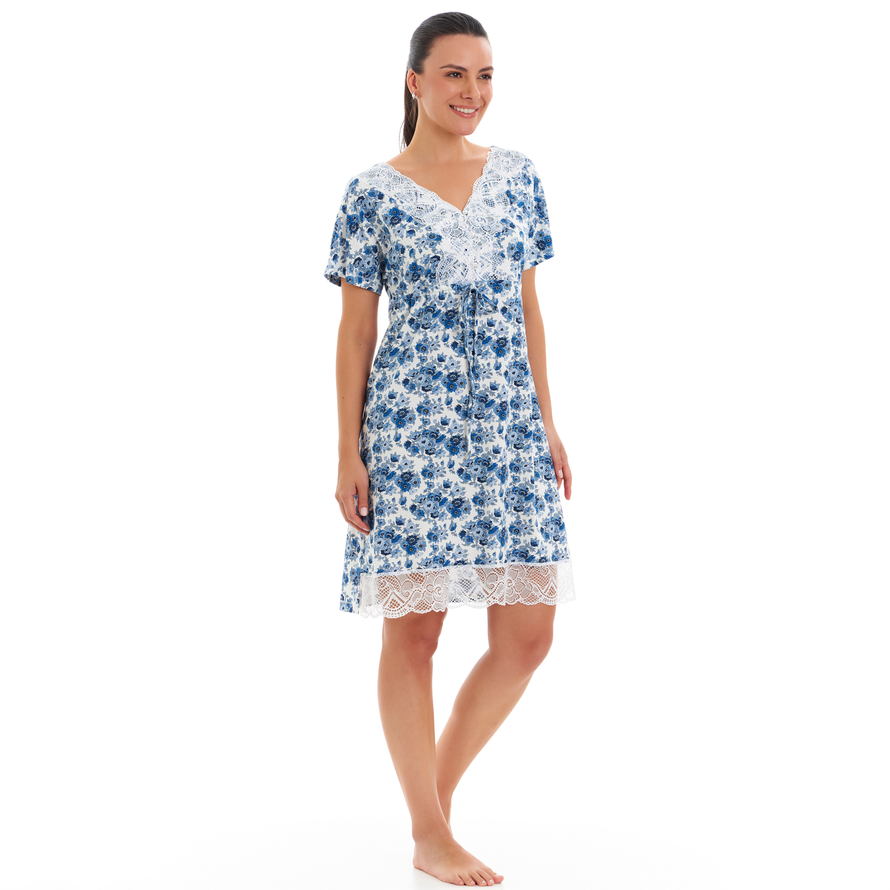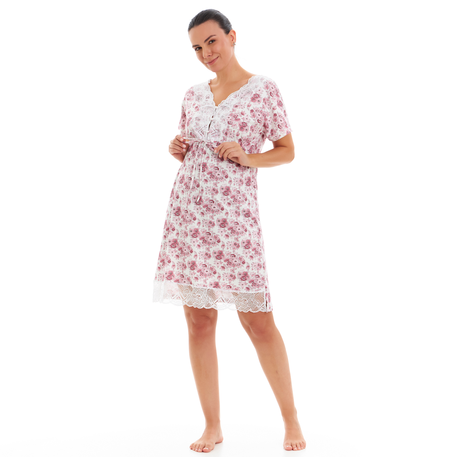 Romântica e delicada, a coleção Flora traz estampa Liberty Fabrics em malha de algodão egípcio com detalhes em renda. Com modelagem estilo bata, abotoamento frontal e amarração abaixo do busto, é perfeita para amamentar ou simplesmente dormir com conforto e feminilidade.