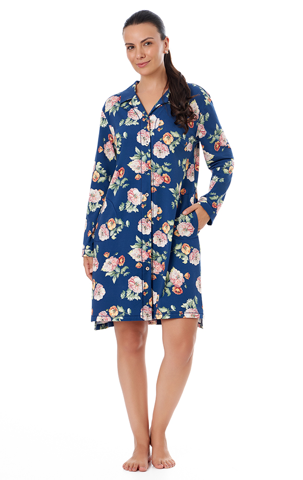Camisão curto com mangas longas e fechamento frontal por botões. Possui bolsos funcionais e pala nas costas com prega, que proporciona melhor caimento e conforto. A parte posterior levemente alongada valoriza a silhueta e traz um toque moderno à peça, unindo praticidade e elegância. Estampa Liberty Fabrics.