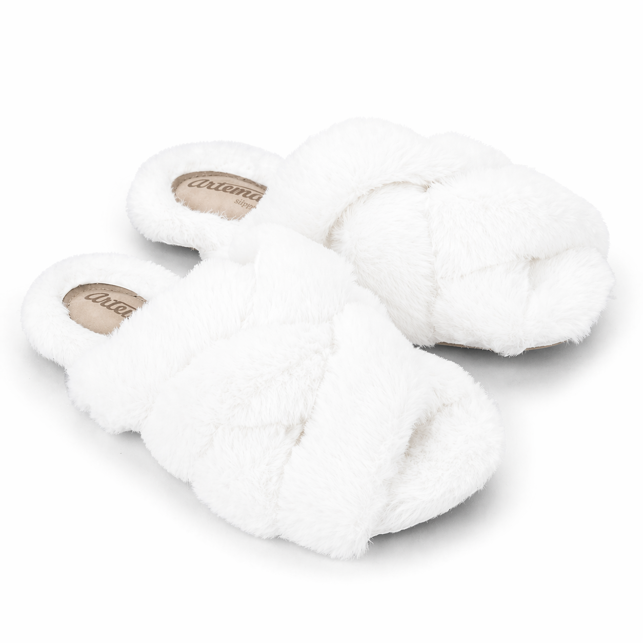 Chinelo aberto cruzado confeccionado em poliéster, confortável e de toque felpudo. Possui detalhe de tiras transpassadas, sola de borracha térmica antiderrapante para a segurança. Espuma interna de 4 cm proporciona maior conforto e maciez. Fabricação Artema.
