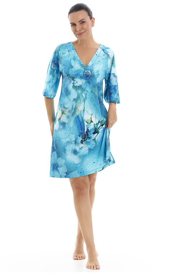 Com decote em V que valoriza o colo, o kaftan apresenta uma modelagem ampla que proporciona liberdade de movimento. As mangas amplas adicionam um toque de charme e sofisticação. Com bolsos nas laterais, permite que você carregue pequenos itens com facilidade. Perfeito para usar sobre o biquíni na praia ou combinado com acessórios para um look casual-chique, este kaftan é uma peça essencial no guarda-roupa. Confeccionada em fluity (malha fria). Produzido com o fio AMNI Soul Eco da Rhodia Solvay, o primeiro fio de nylon certificado 6.6 biodegradável do mundo.