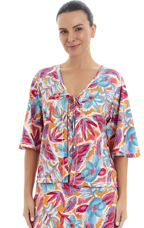 A linha Patrícia traduz o espírito leve e vibrante do verão. As peças apresentam uma estampa floral de energia viva e feminina. Com modelagens descontraídas e confortáveis, convidam a aproveitar os dias ensolarados com liberdade, bem-estar e alegria.