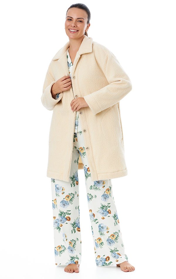 Casaco homewear, um charme para usar em casa ou na rua! Confeccionado em Soft Sherpa, quente e fofinho, imitando lã de carneiro. Modelo corte reto larguinho e mangas compridas. Possui bolsos nas laterais e botões. O conforto da textura felpuda de visual carneirinho traz uma sensação de aconchego e acolhimento térmico para os dias mais gelados.